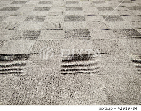 [素材] 青海波のパターンを描く枯山水の砂利の背景テクスチャのクローズアップ。