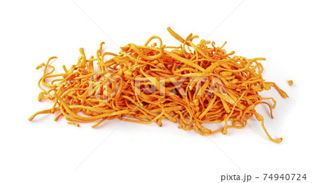 A pile of Dried Safflower petals herb Tea. isolated on a white background