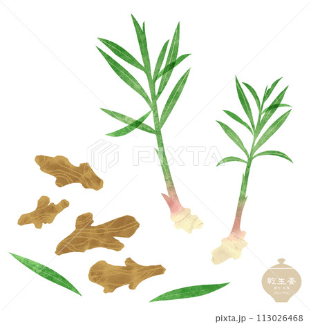 生薬のイラスト/ 生姜の葉根・乾生姜