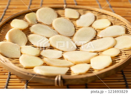 生姜の天日干し しょうがを乾燥 ショウガを干す