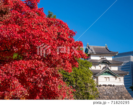 皇居 乾通りの美しい紅葉と青空(東京都千代田区)
