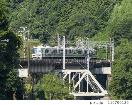 大和路線の電車が走る大和川の渓谷
