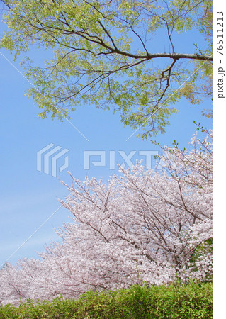 若葉に新緑 水面に映える景観 尾久の原公園 園児