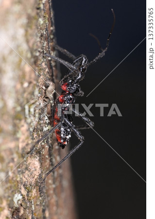 生き物 昆虫 キバラヘリカメムシ、幼虫は『オオトビサシガメ』そっくりです。これも擬態の一種?
