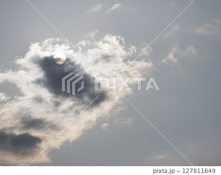 雲に隠され輪郭だけ見える太陽(暗め)