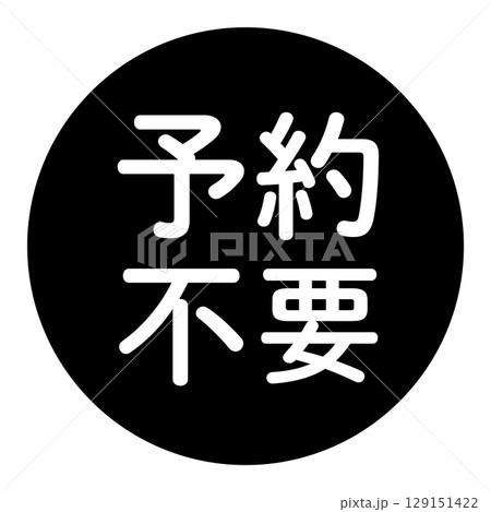 「予約不要」のイラストマーク 丸に白抜き文字 背景透過