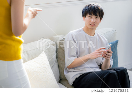 夫婦 カップル 家族 喧嘩 言い争い 家庭 トラブル 人物 素材