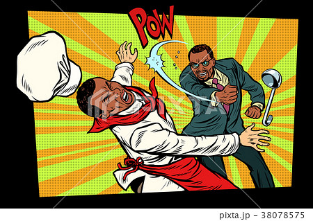 restaurant food. Unhappy customer fights chef