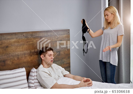 Quarrel between young spouses at home.
