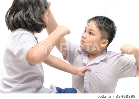 asian brother and sister quarreling isolated