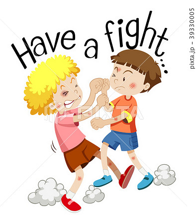 Two boys fighting with phrase have a fight