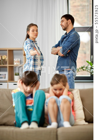 sad children and parents quarreling at home