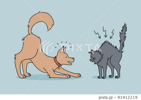 Angry cat and playful dog playing at home