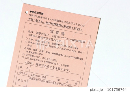 選挙前に送られてくる投票所入場券 期日前投票に持参する宣誓書