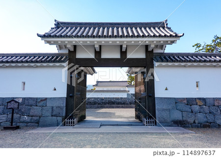 【神奈川県】綺麗な青空と小田原城の馬屋曲輪にある門