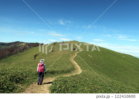 長野の二ツ山から鉢伏山へ向かう女性登山者