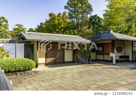 梅が咲き春めいてきた皇居東御苑の諏訪の茶屋