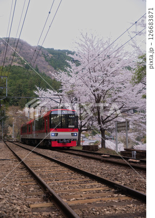 叡山電鉄鞍馬線二ノ瀬駅 桜並木とメープルレッド10