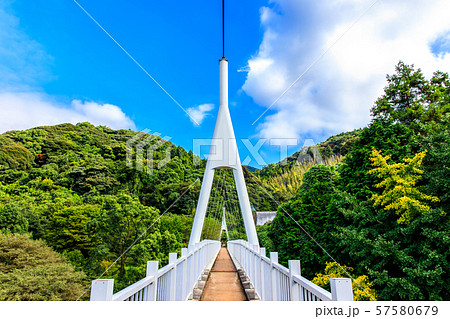 新緑の加茂ゆらりんこ橋_福岡県糸島市二丈福井 (吊り橋・つり橋)