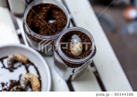 カブトムシ、昆虫、飼育、虫、兜、夏休み、夏、採取、幼虫、土、ブリーダー、屋内、瓶、容器、ビン、コピー