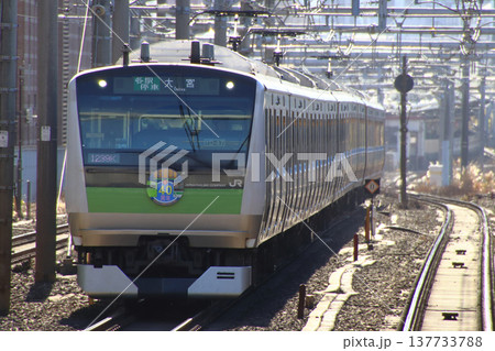 赤羽駅に停車中の埼京線E233系電車(相鉄線直通:海老名行)