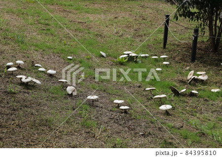 自然 茸 オオシロカラカサタケ、有名な毒キノコです。こちらは大きな菌輪(フェアリーリング)