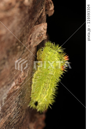 生き物 昆虫 ヒロヘリアオイラガ、終齢幼です。背中の模様が美しいですが触ると危険