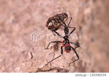 生き物 昆虫 ヨコヅナサシガメ、幼虫です。成長すると二センチ前後になる大型のサシガメ