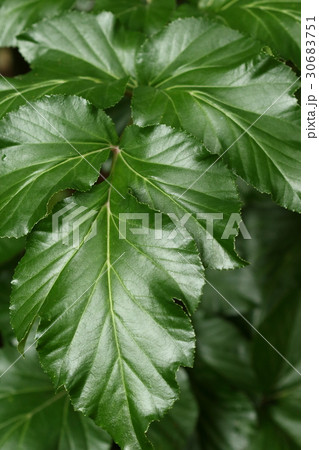 自然 植物 ハマウド、沖縄の海岸でも強い日差しにめげす艶々の葉を茂らせます