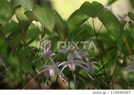 自然 植物 イカリソウ、山地や丘陵の林縁などに自生。山菜や生薬にもなるそうです