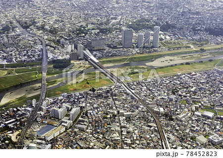 川崎市多摩区登戸上空から二子玉川方向を空撮