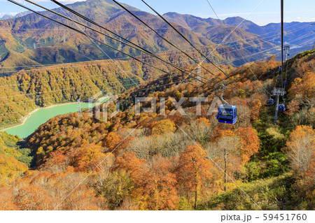 田代ロープウェイから臨む二居湖のエメラルドグリーンのコメント紅葉の山々