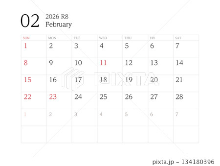 2026年2月カレンダー 日本の2月卓上カレンダー 祝日祭日休日連休 白背景