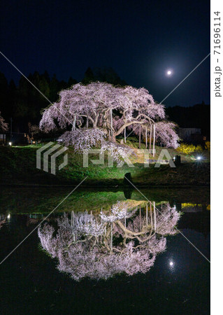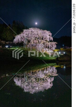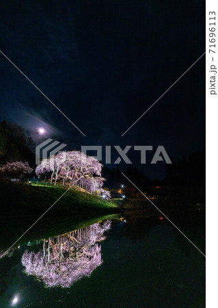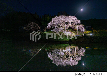 中島の地蔵桜 二本松 夜桜 ライトアップ 鏡桜