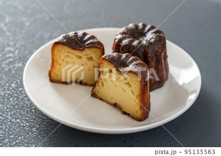 白いお皿にのったフランスの洋菓子カヌレ【黒背景】