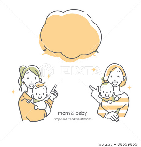 赤ちゃんを抱っこするふたりのお母さん 笑顔