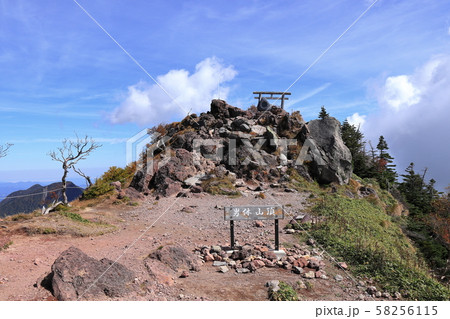 霧氷付く奥日光男体山と二荒山神社中宮祠の鳥居