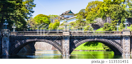 都市風景 皇居外苑から望む二重橋と伏見櫓 東京都千代田区