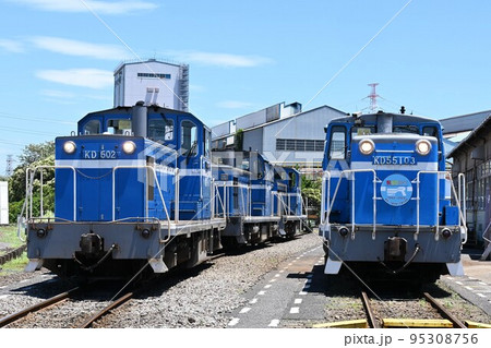 車両基地で並ぶ京葉臨海鉄道KD60形ディーゼル機関車とKD55形ディーゼル機関車