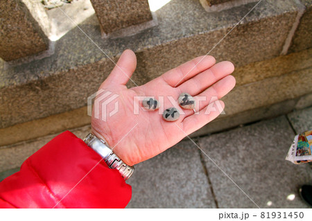 【大阪】初夏の住吉大社 五所御前前で五大力石を手に乗せる女性