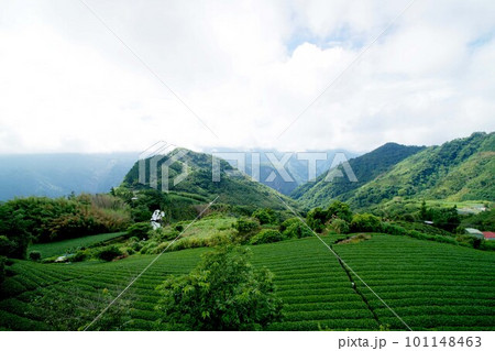 台湾 阿里山山脈と茶畑の風景