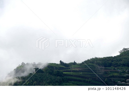 台湾 阿里山山脈と茶畑の風景 日の出