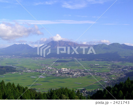 阿蘇五岳 阿蘇涅槃像 久住高原展望台から望む阿蘇五岳 大分県竹田市久住町久住