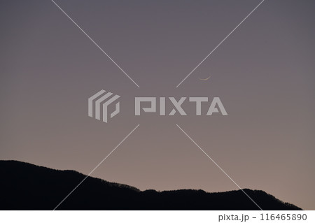 北杜市白州町で見る、皐月の夕空に三日月