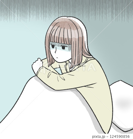 アニメスタイルの五月病のイラスト、物憂げ、アイコン、素材