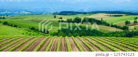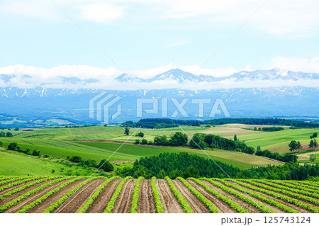 夏の北海道美瑛町の五稜の丘からの雄大な風景