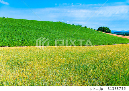 北海道美瑛町 五稜の丘の爽やかな夏景色