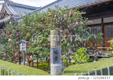 浄土宗の寺院で京都市北区の「椿寺」の愛称でも親しまれている椿満開の地蔵院影影