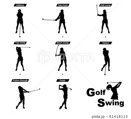 ゴルフのシルエット 女子ゴルファー ポーズ21
