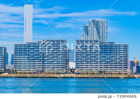 日本の東京都市景観 晴海の高層マンションなどを望む